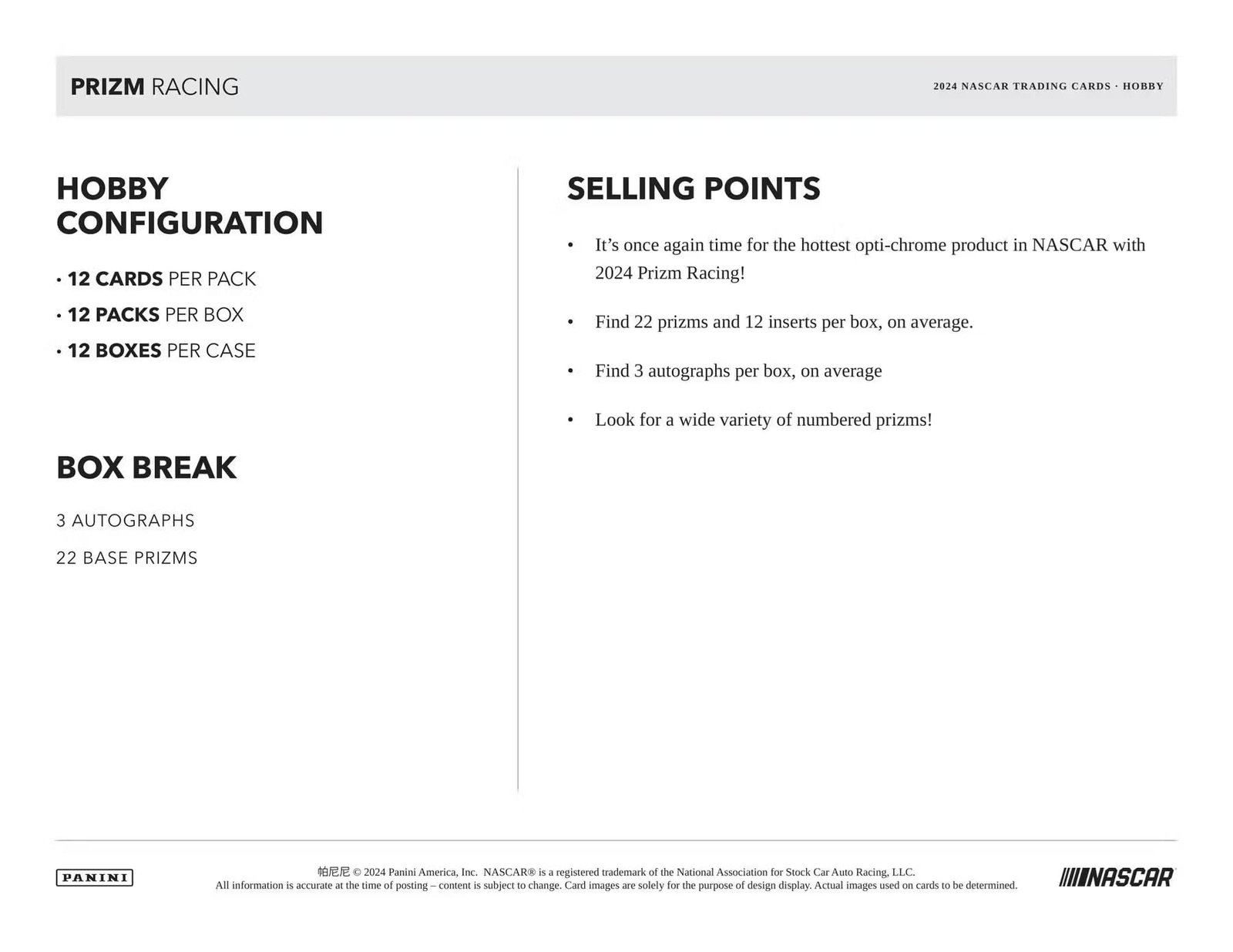Details: 2024 Panini Prizm NASCAR Racing Hobby Box